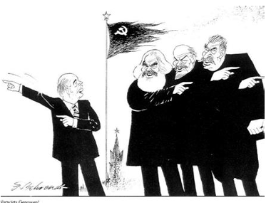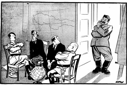 Kokia 1948 m. karikatūros „Kurią šalį dar išlaisvinsime nuo laisvės, drauge?“ pagrindinė mintis apie SSRS politiką?