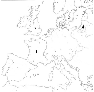 Kurioje iš žemėlapyje skaičiais pažymėtų valstybių XVI a. neįsitvirtino reformacija?