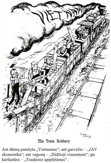 Kokia yra karikatūros apie Vietnamo karo įtaką JAV ekonomikai pagrindinė mintis?
