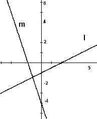 Уравнения прямых l и m соответственно равны: y = ax + b и y = cx + d.