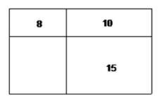 Прямоугольник состоит из четырех прямоугольников.По данным рисунка вычислите его площадь‚ если площади (см2) трех из них известны.