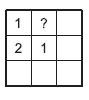 В каждую клетку квадрата 3 × 3 надо вписать одну из цифр 1, 2 или 3. Каждая цифра должна встречаться в каждой строчке и в каждом столбце. Три клетки уже заполнены. Какую цифру можно поставить вместо вопросительного знака?