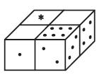 Общее количество точек на противоположных гранях игрального кубика равно 7. Четыре одинаковых игральных кубика сложили вместе и закрасили некоторые грани. Сколько точек было на грани, отмеченной знаком ∗, если ку- бики приложены друг к другу по одинаковым граням?