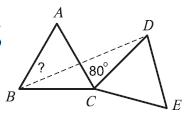 ABC и CDE – равные правильные треугольники. Чему равен угол ABD, если угол ACD равен 80º?