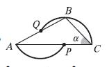 Точки P и Q являются центрами окружностей, дуги которых изображены на рисунке. Угол BAC равен 22º. Чему равен угол α?