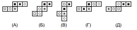 Из каждой заготовки (А) – (Д) можно склеить кубик. 4 кубика получатся одинаковыми, а один будет от них отличаться. Из какой заготовки получится этот кубик?