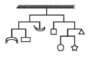 Конструкция на рисунке весит 112 граммов и находится в равновесии (вес горизонтальных планок и вертикальных нитей не учитывается). Сколько весит звездочка?