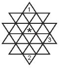 В каждый маленький треугольник надо вписать одно из чисел 1, 2, 3, 4. Вписывать надо так, чтобы в любой полоске, состоящей из 4 маленьких треугольников, встречались все 4 числа. Некоторые числа уже вписаны. Какое число может быть вписано вместо *?