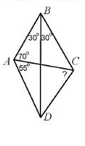 В четырехугольнике ABCD известны некоторые углы между /30 |30° сторонами и диагоналями (см. рисунок). Найдите + ACD. /70°
