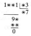 Dalybos kampu veiksme praleisti kai kurie skaitmenys ir net visa viena eilutė. Kiek skirtingų dalybos rezultatų galima gauti užpildžius praleistas vietas?
