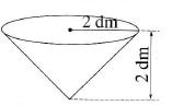 Iš sklidino kūgio formos indo (matmenis žr. paveikslėlyje) vandenį išpilame į kubo su kraštine 2 dm formos indą. Kokį aukštį sieks vanduo (decimetrais)?