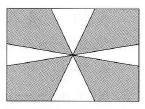Kiekviena stačiakampio kraštinė padalyta į 3 lygias dalis. Sujungus per centrą dalijimo taškus ir užtušavus kas antrą sritį, gautas pavaizduotas piešinys. Koks yra baltosios ir juodosios dalių plotų santykis?