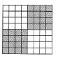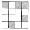 Gardelėje 8 x 8 kai kurie kvadratėliai užtušuoti, kaip pavaizduota paveikslėlyje. Kiek yra iš kvadratėlių sudarytų kvadratų, kuriuose baltų ir juodų kvadratėlių yra tiek pat?