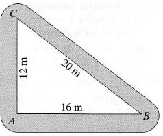 Trikampio aptvaro ABC kraštai yra 16 m, 20 m ir 12 m. Aptvaras aptvertas aukšta tvora, bet jame esanti žirafa, turėdama ilgą kaklą, gali skabyti žolę atstumu iki 2 m už tvoros. Kam apytiksliai lygus plotas (m2) aptvaro išorėje, kurį gali nuėsti žirafa?