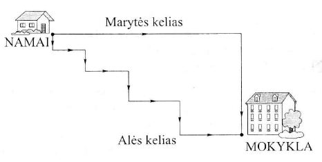 Alė ir jos sesuo Marytė iš namų į mokyklą eina skirtingaikeliais. Kuris kelias ilgesnis?