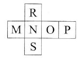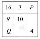 Magiškojo kvadrato kiekvienoje eilutėje, kiekviename stulpelyje ir kiekvienoje įstrižainėje visų elementų suma yra ta pati. Salia pavaizduotas magiškasis kvadratas, iš kurio du skaičiai pašalinti, o kiti trys uždengti kortelėmis su raidėmis P, Q ir R. Kam yra lygi kortelėmis P, Q ir R uždengtų skaičių suma?