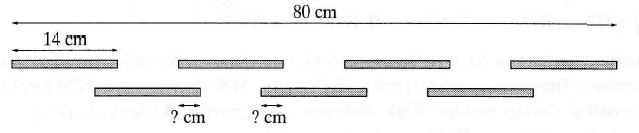 Изображенные палочки одинаковы по длине; одинаковы и промежутки между палочками. Какова длина каждой из частей одинаковой длины, отмеченных вопросительным знаком?