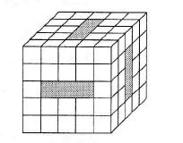 В большом кубе, склеенном из кубиков, просверлены дыры, как это показано на рисунке. Сколько кубиков осталось в большом кубе?