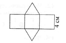 Развертка тела состоит из трех квадратов, сторона каждого из которых равна 4 см, и двух равносторонних треугольников. Чему равен объем тела?