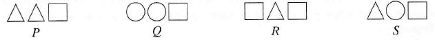 Kiekviena iš raidžių P, Q, R ir S reiškia virš jos pavaizduotų daiktų bendrą masę (vienodos formos daiktai sveria vienodai).
