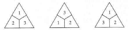 Viename žaidime žaidžiama su lygiakraščio trikampio formos žetonais. Kiekvienas žetonas padalytas į tris vienodus keturkampius, kaip parodyta paveikslėlyje.