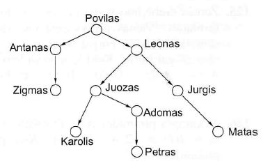 Petras sudarė genealoginį medį, į kurį įtraukė tik vyrus — savo protėvius ir jų palikuonius. Rodyklės nukreiptos nuo tėvo į sūnų. Koks yra Petro tėvo brolio senelio brolio sūnaus vardas?