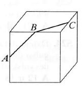 Koks yra didumas kampo tarp atkarpų AB ir ВС (žr. paveikslėlį), kur A, B ir C yra kubo briaunų vidurio taškai?