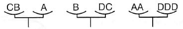 Pavaizduotos trejos svarstyklės yra pusiausviros. Keli svarsčiai C atsvertų svarstį B?