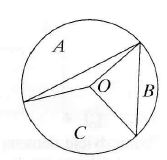 Pavaizduoto apskritimo spindulys yra 1, o centras — taškas O. Srities A plotas yra 5π/12 - 1/4 , srities B plotas π/4 - 1/2. Srities C plotas lygus
