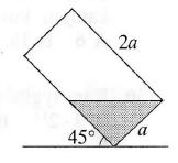 Cilindrinės stiklinės matmenys nurodyti paveikslėlyje. Į ją įpilta vandens, ir ji paversta 45° kampu. Kokią stiklinės tūrio dalį užima vanduo?