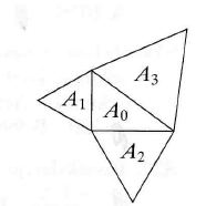 Paveikslėlyje pavaizduotų trikampių plotai yra A0, A1 , A2, A3. Ploto A0 trikampis statusis, kiti trys trikampiai — lygiakraščiai. Kuri iš lygybių teisinga?