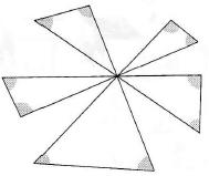 Iš kvadrato viršūnių kaip iš centrų nubrėžti keturi vienodo spindulio apskritimai, liečiantys iš išorės tokio pat spindulio apskritimą, kurio centras sutampa su kvadrato centru. Kam lygus užtušuotų sričių bendro ploto ir skritulių bendro neužtušuoto ploto santykis?