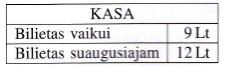Tėtis su trimis vaikais nuėjo į cirką. Lentelėje pateiktos bilietų kainos.