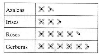 This table shows the ąuantity of different ty-pes of flowers in the botanical garden. Ted was told by the gardener that there were 35 azaleas, 50 irises and 85 roses in the garden. What is the number of gerberas growing in the garden?