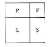 A garden of a square shape is divided into a pool (P), a flowerbed (F), a lawn (L) and a sandpit (S) (see the picture). The lawn and the flowerbed are of a square shape. The perimeter of the lawn is 20 m, the perimeter of the flowerbed is 12 m. What is the perimeter of the pool?