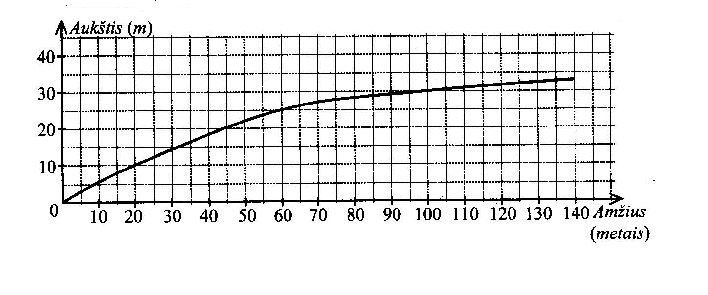 Paveiksle pavaizduotas pušies aukščio priklausomybės nuo jos amžiaus grafikas.