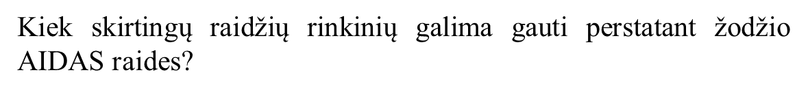 Taškų skaičius už teisingą atsakymą: 1