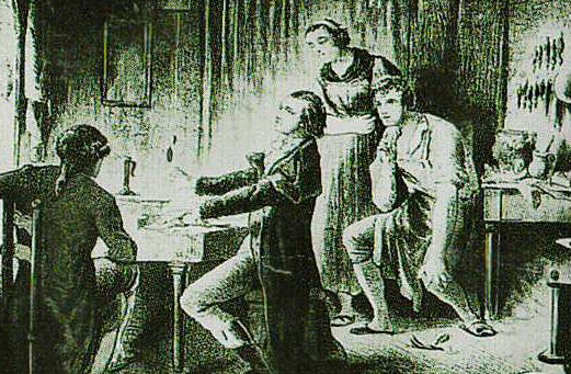 Kas pavaizduotas besiklausantis klavesinu grojančio Bethoveno?