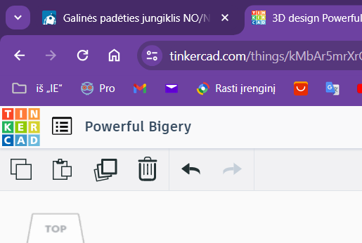 Ką reiškia migtukas iš 3 kvadratėlių Tnkercad progra